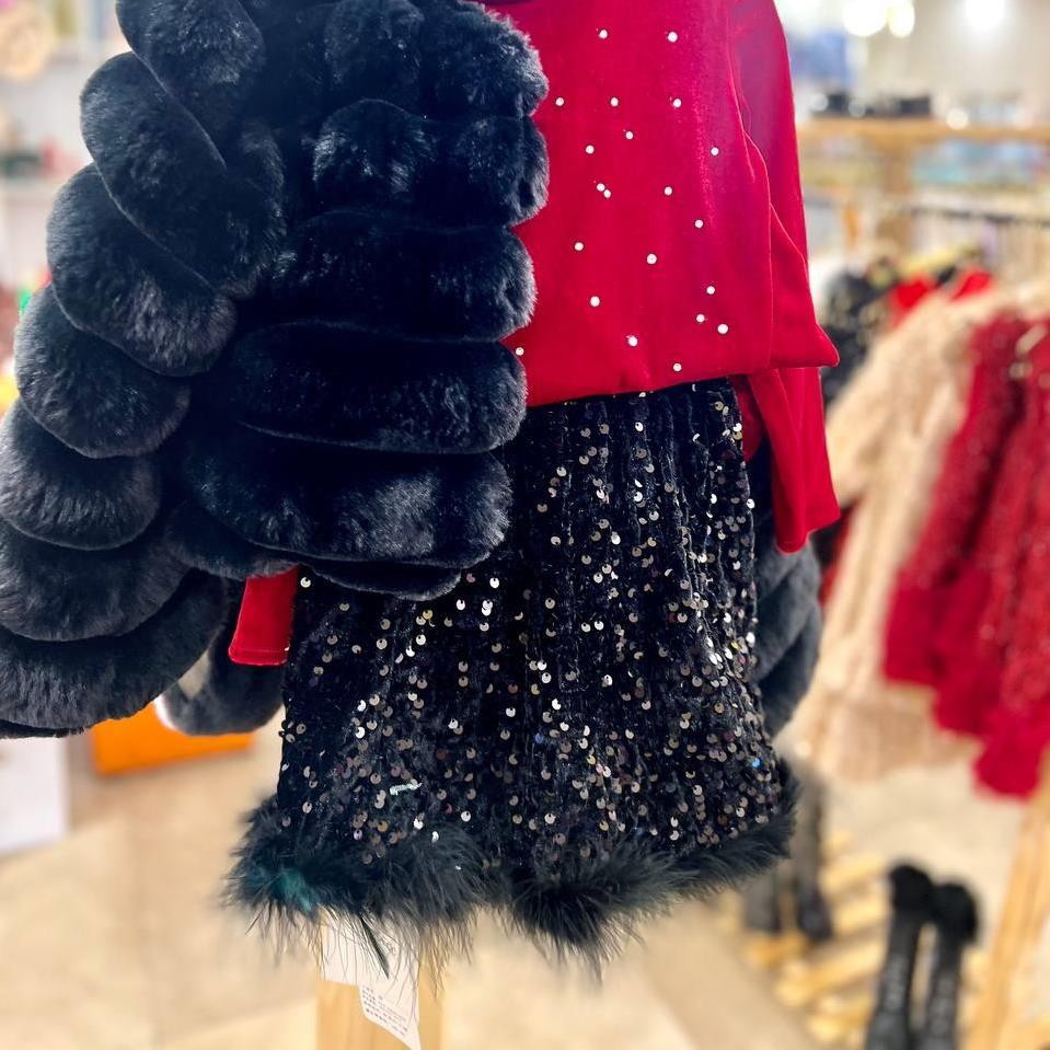 دامن مشکی پولکی مخمل رسمی کد 700119