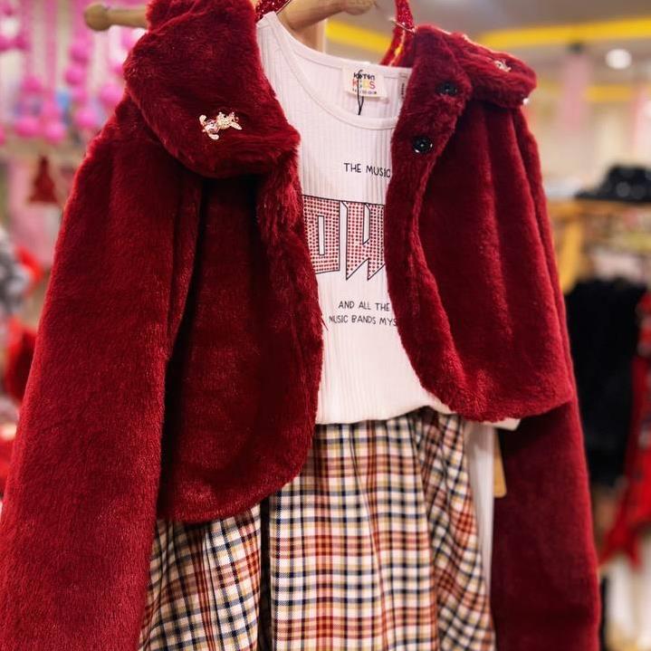 کت خز قرمز لاکچری دخترانه کد 1879
