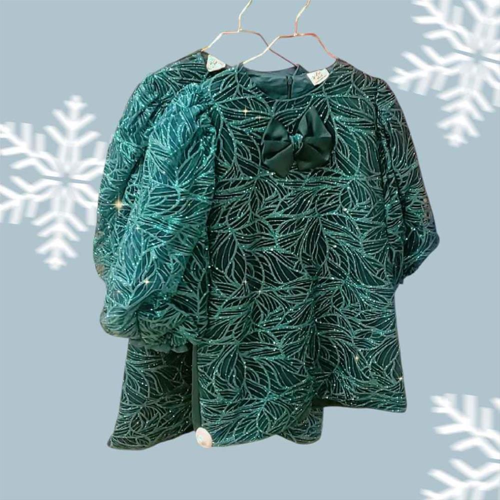 پیراهن سبز شاین دخترانه رسمی کد 3434