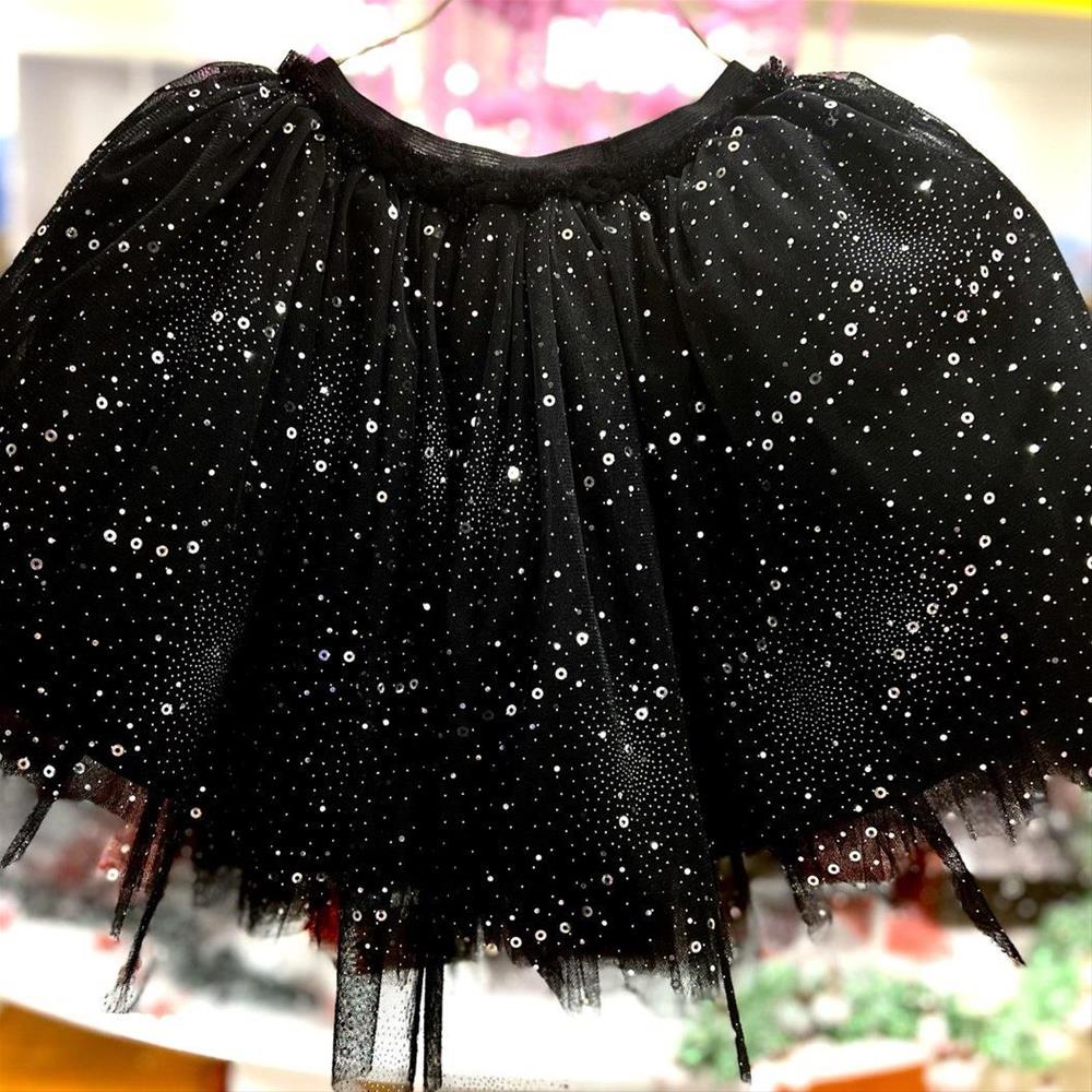 دامن پولکیرنگ مشکی با پولک نقره ای