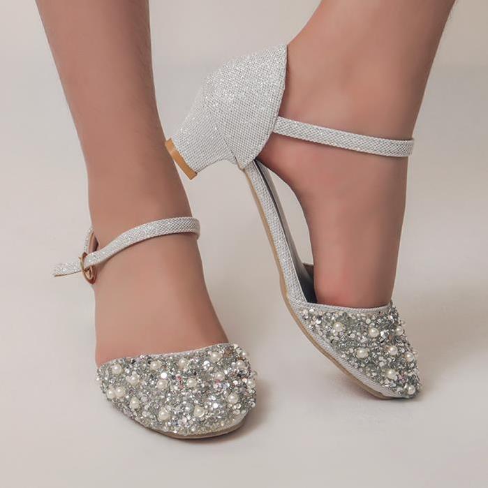 کفش مجلسی نقره ای جلو مرواریدی
