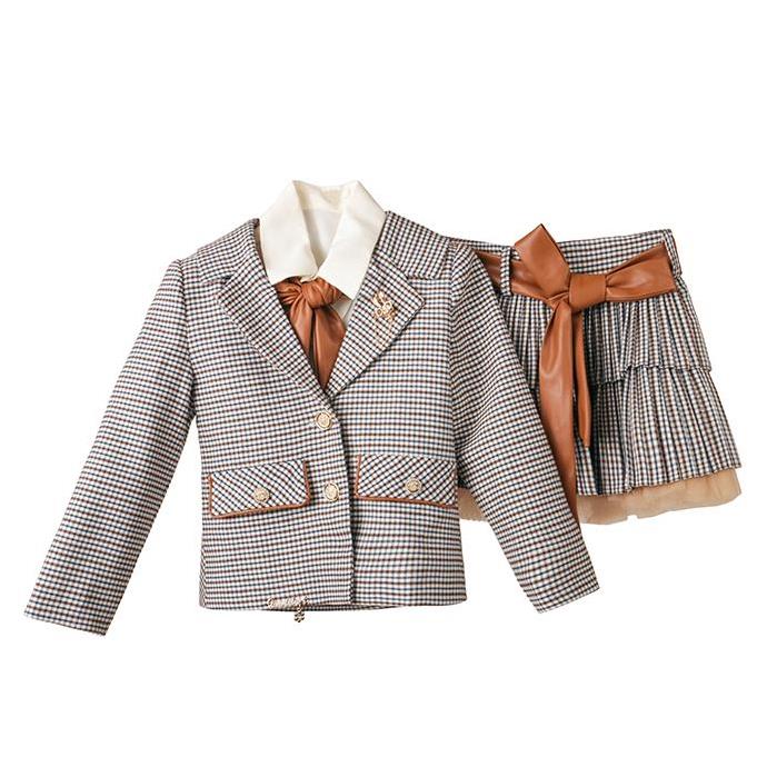 دارای ( بلوز, دامن, کت, کیف, جوراب شلواری )
